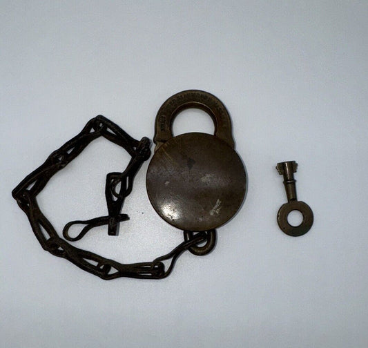 Vintage Ames Sword Co Brass Padlock with Key 1884 Victorian Era FNF