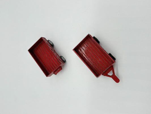 (2) Tootsie Toy Red Farm Trailer Diecast Metal 1/64 ~ One Handle Broken