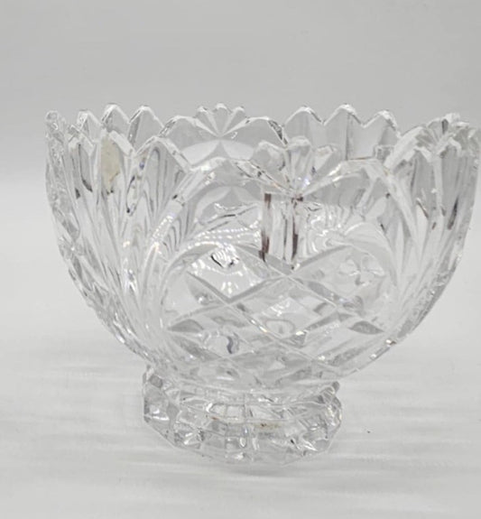 Press Glass Bowl Saw Tooth Rim and Fan Pattern Heavy 8 3/4" Diameter