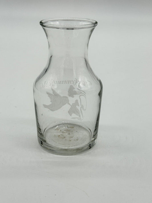 RARE Vintage Etched Humming Bird Wine Carafe - Frankenmuth Mt.