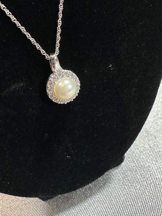 Round Pearl 10mm Simulated Cz Gemstone 925 Sterling Silver Jewelry Necklace MJWL