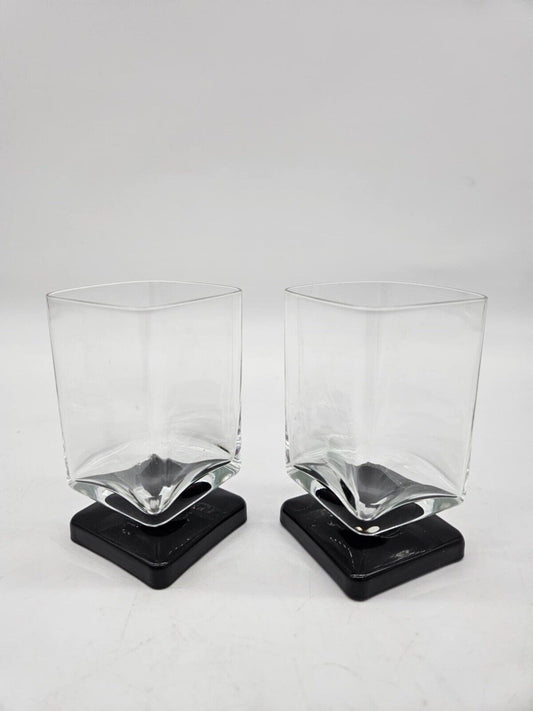 Set/2 DiSaronno Black Base Glass Square Footed Pedestal 4” Rocks Cordial Barware