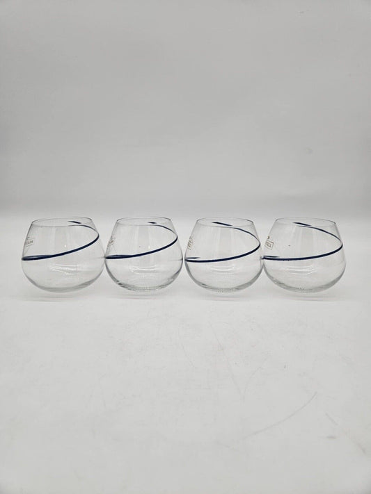 Set of 4 MARTELL COGNAC Crystal GLASSES Balloon SNIFTER Roly Poly Cordon Bleu