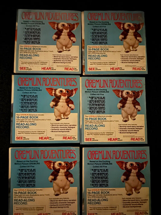 SET OF 6 VINTAGE GREMLINS READ ALONG BOOKS & 33 1/3 RECORDS ~ DATED 1984