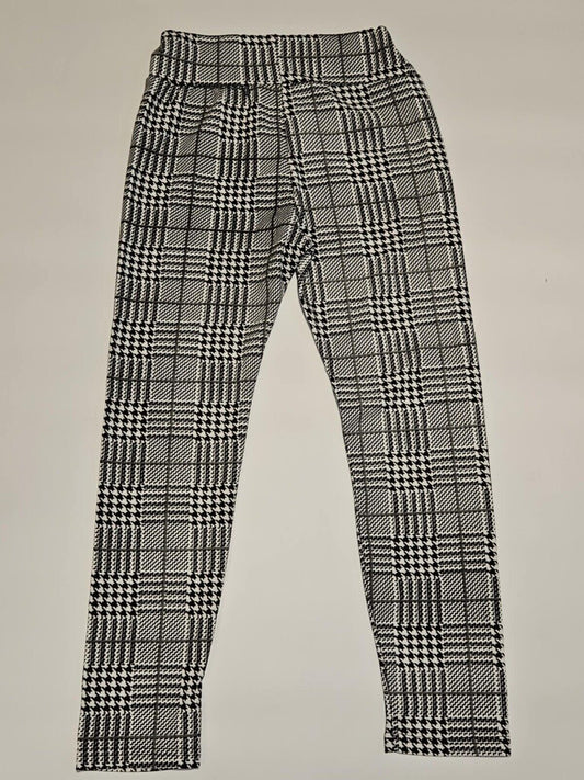 Stretchy Legging Dress Pants Black White Plaid Stretch Waist Sz M WCLTH