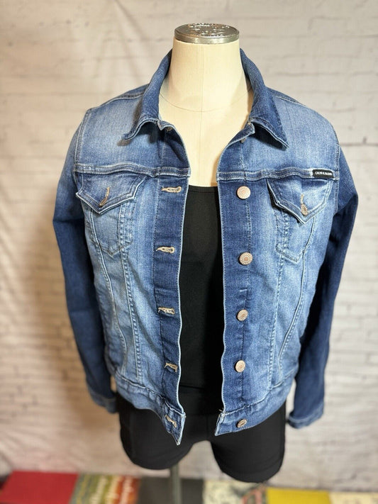 SZ SMALL Calvin Klein Jeans Jacket Women's Blue Denim Trucker Stretch WCLTH 001