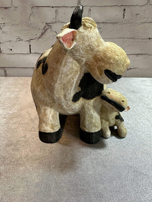 Sweet Cow and Calf Piggy Bank Black and White Holstein Textured Detailed MHD QCC