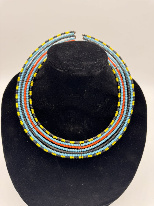 Tanzanian Maasai BEADED Tribal Jewelry 7 Strand Wire Collar Necklace Adult