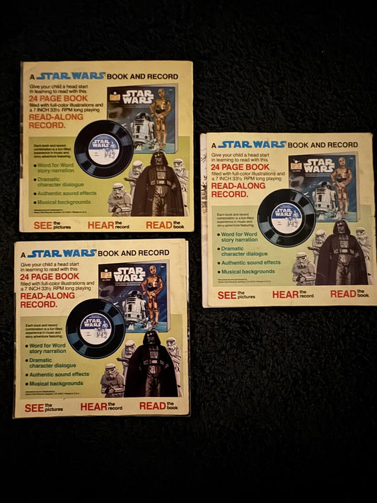3 Lot Vintage Star Wars READ ALONG BOOK and RECORD Empire Jedi Ewoks Droids 1979