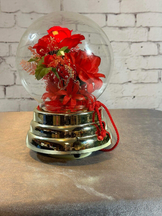 Vintage 1070s Illuminated Red Roses Glass Globe Windup Music Spins VHD QCC