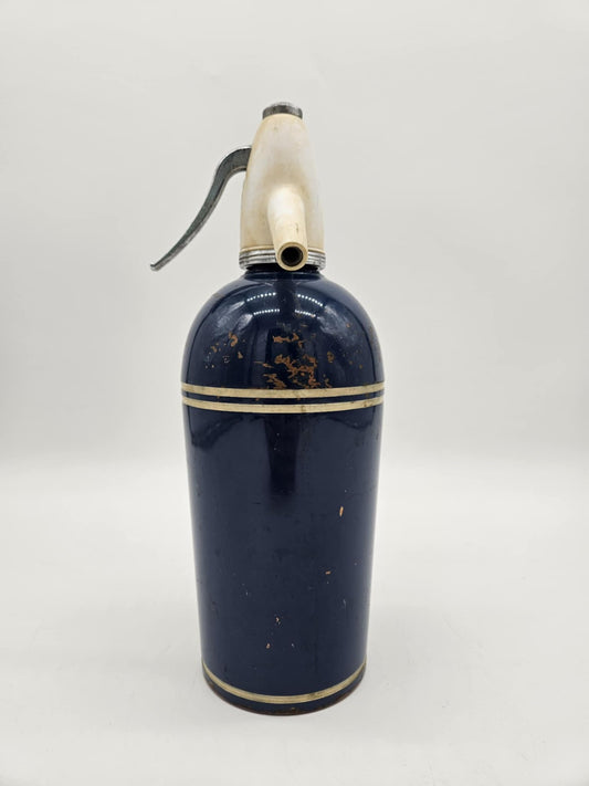 Vintage 1950s Sparklets Soda Syphon Seltzer Bottle Bar Art Deco Dark Blue Enamel