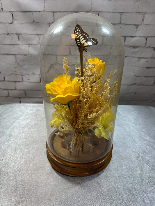 Vintage 1970s Glass Dome Taxidermy BUTTERFLIES & FLORAL Display Terrarium VHD