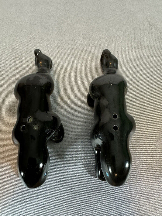 Vintage Artmark Ceramic Salt and Pepper Shakers Black Panthers Blue Eyes 5" TNO