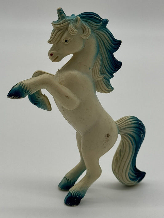 Vintage Blue & White Rearing Unicorn 5” Figure Solid PVC/Rubber Toy VTY 006