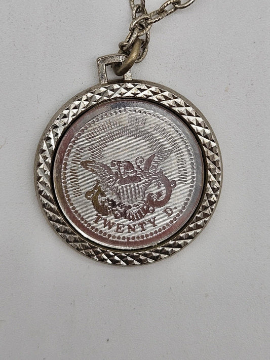 Vintage Bicentennial 1776 Twenty D Coin Necklace Pendant Silver Tone 12” Chain