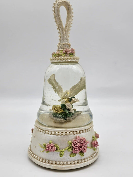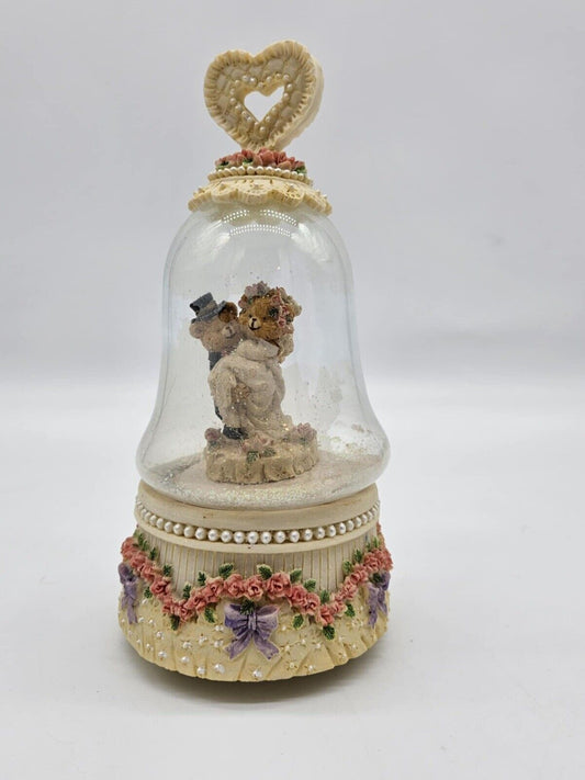 Vintage Bell Shaped Musical Wedding Bear Snow Globe