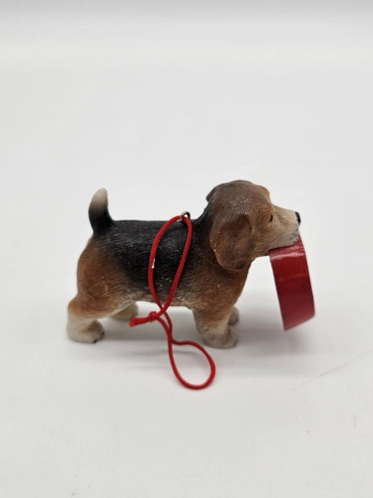 Vintage Beagle Dog Ornament W/ Dog Dish Resin 3 Inch Dog Gift Christmas