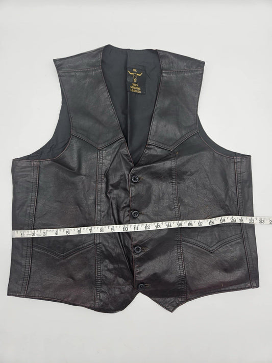 Vintage Black Genuine Leather Motorcycle Biker Vest ~ Sz XL