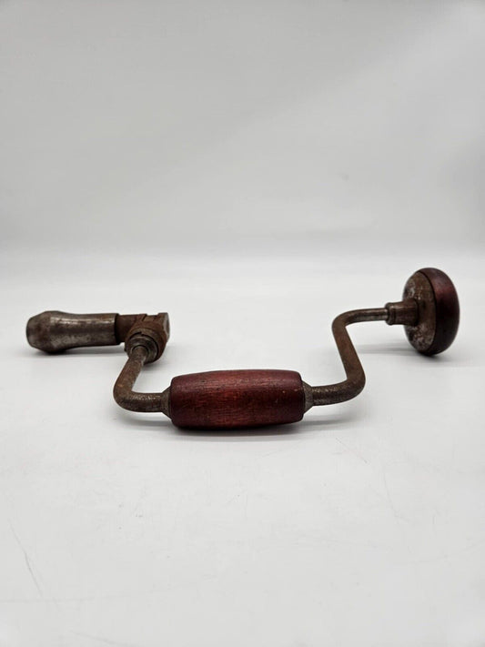 Vintage Carpenter Hand Drill 12-1/2" Antique Wooden Handle Ratchet Brace Tool