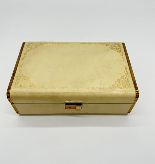Vintage Farrington Jewelry Box Genuine Texol Cream & Burgundy Lining 10x6