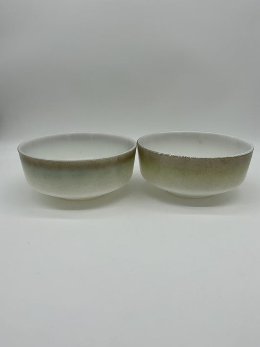 Vintage Federal Glass Ombré Mesa Pattern Milk Glass Mixing Bowls w/ Lid