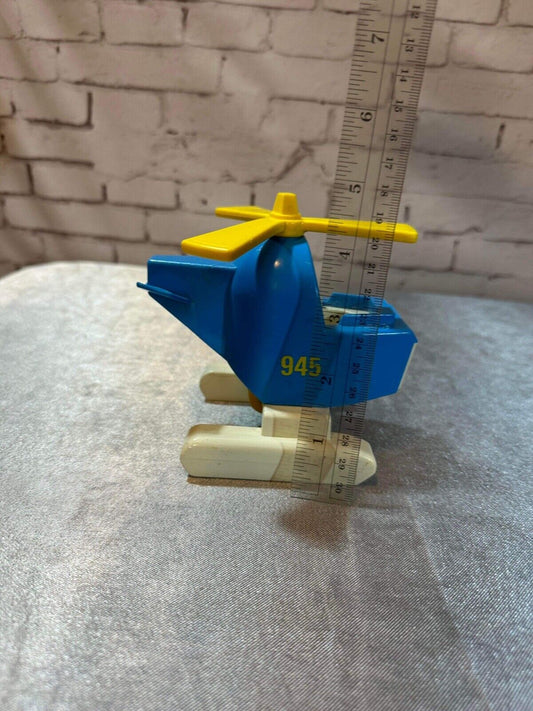Vintage Fisher Price Little People Blue Helicopter #945 Offshore Cargo Base VCTY