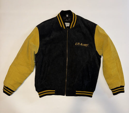 Vintage Leather U.S. Army Bomber Jacket Mens Large Black And Yellow size L