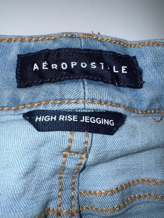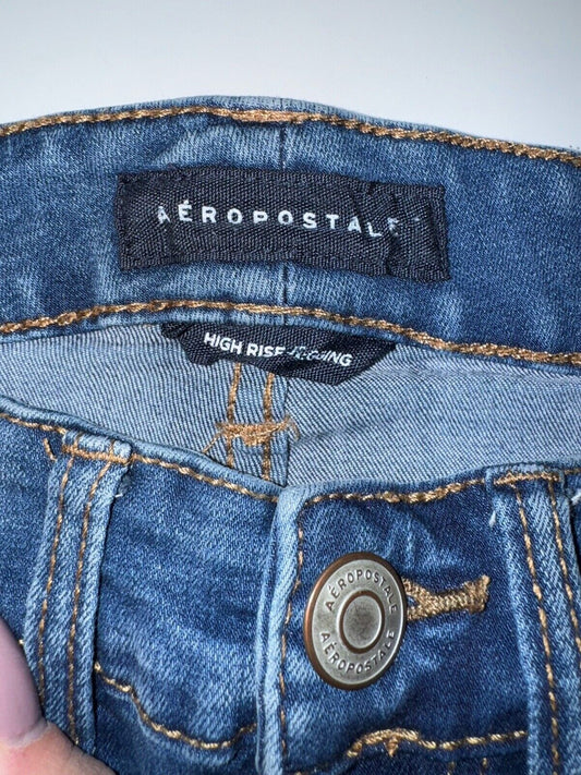 Aeropostale Jeans 000 Short Womens Blue Denim High Rise Jegging Distressed Light