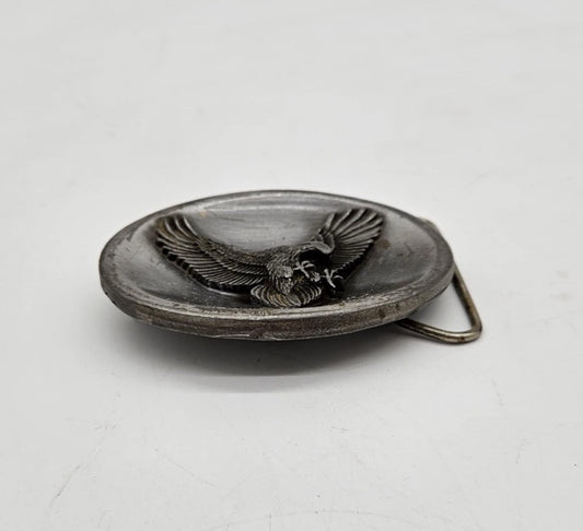Aged Vintage 1980s Soaring Eagle Motorcycle Biker WINGS Pewter Belt Buckle