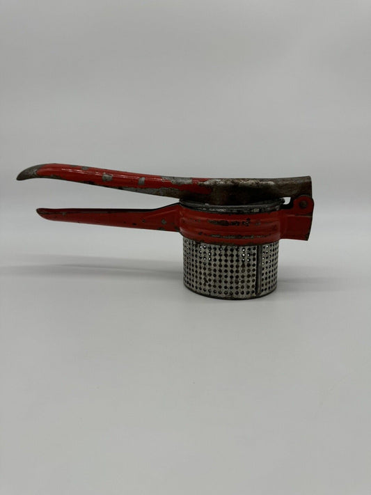 Vintage Potato Ricer Grinder Red Handle Antique Metal Kitchen Tool Juice