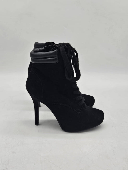 Andiamo High Heel Booties Black Size 9 Faux Suede Zipper Lace up Stiletto