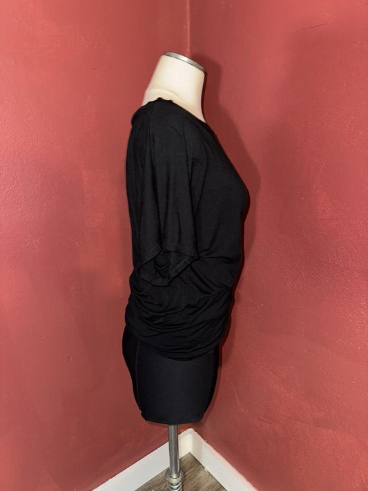 Women’s Free To Live SZ S Fitted Waistline Tunic Black Short Sleeve Top WCLTH