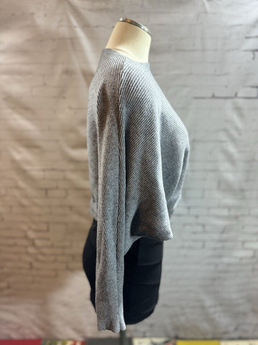 Womens Medium Gray Weave Dolman Sleeve Open Knit Boat Neck Sweater