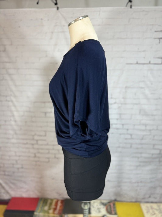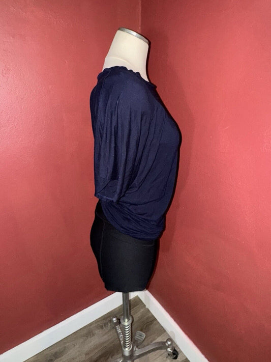 Women’s Free To Live SZ S Fitted Waistline Tunic Navy Short Sleeve Top WCLTH