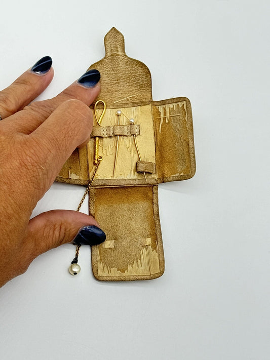 Civil War Era Tiny Leather Antique Sewing Pouch