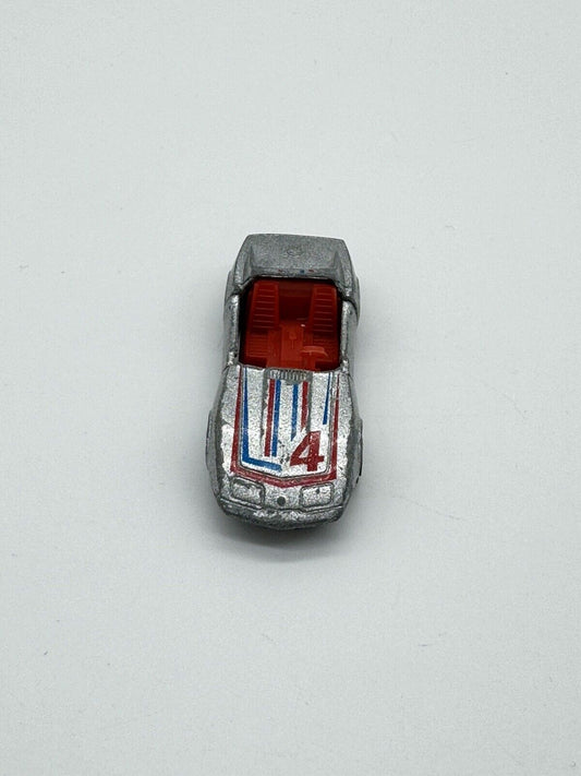Corvette No.4 Silver Made In Hong Kong Vintage Racing Car Toy Doors Move