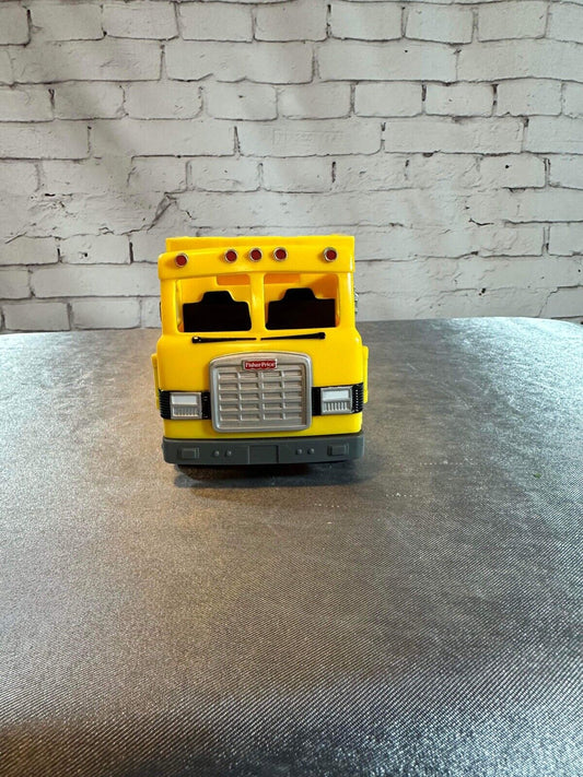 FISHER PRICE DUMP TRUCK PLASTIC 7"X 4" LEVER ACTION POPS UP BACK VTY