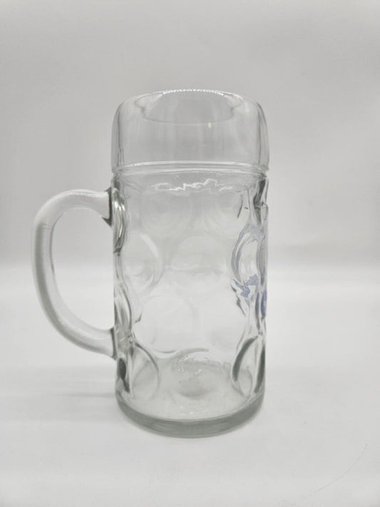 Hofbrauhaus Munchen White Label Dimpled Beer Bier Glass Mug Stein 1 Liter