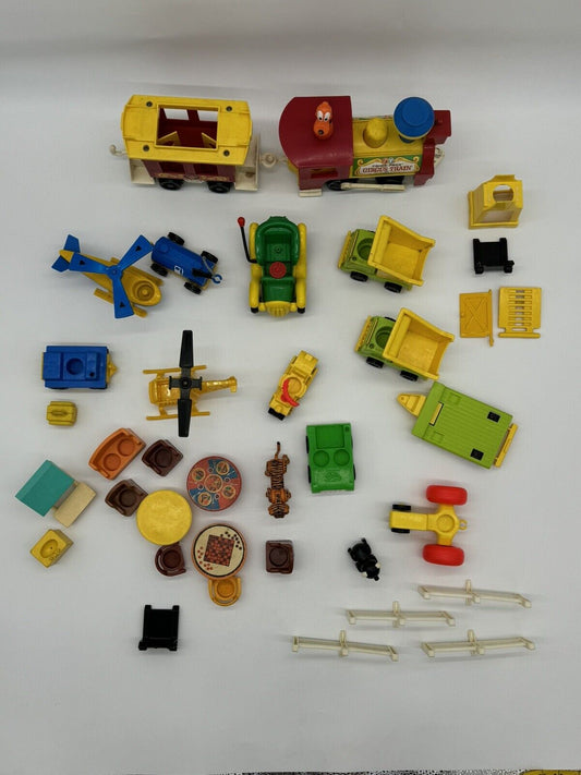 Huge Lot Of Vintage Fisher Price Little People Furniture, Cars, Trains, Ect