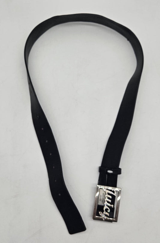 Juicy Couture Logo Black Faux Leather Double Wrap Waist Belt S M