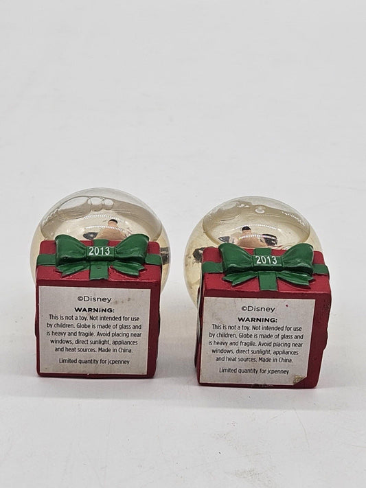 Lot of 2 JC Penney Snow Globes 2” High Disney Mickey Mouse Christmas Xmas 2013