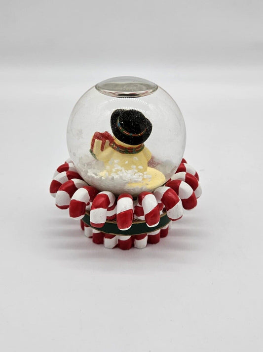 Mini Vintage Christmas Snow Globe Snowman w/ Presents Row of Candy Canes
