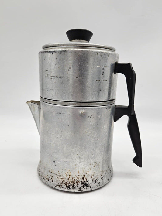 2 Vintage Aluminum Mirro Drip Pot Coffee Makers Percolator 9 Cup Camping M0829