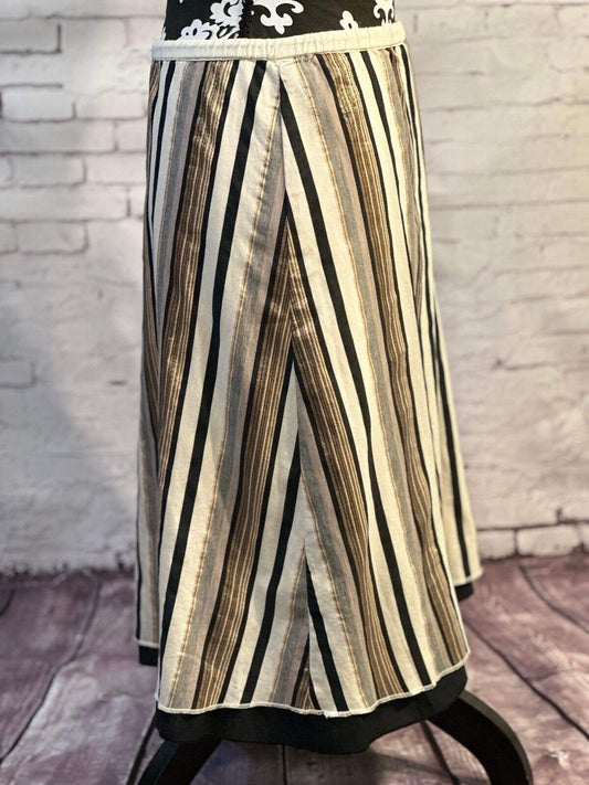 Old Navy Cotton Skirt Gold Metallic Stripe, Drawstring Waist Size Small WCLTH