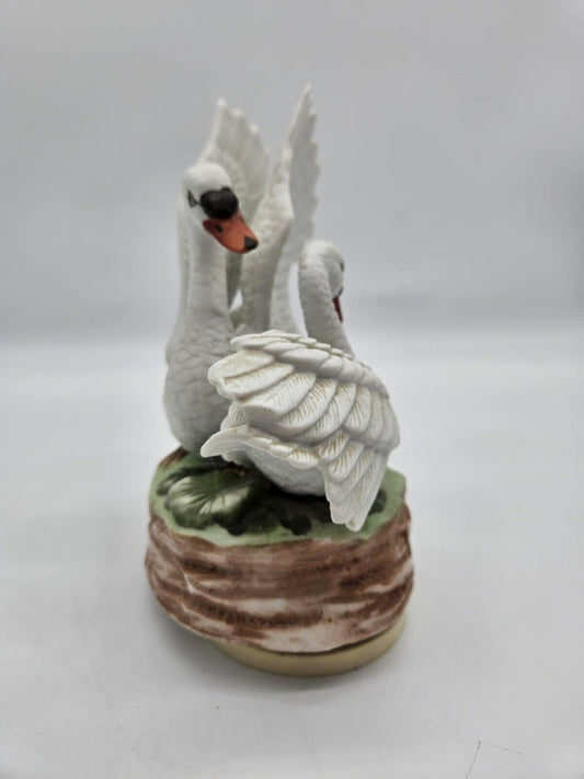 Porcelain double white swan music box "Those Were The Days" excellent condition