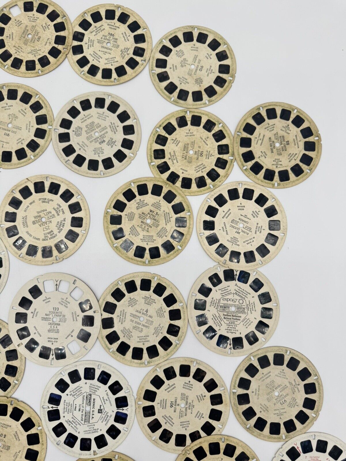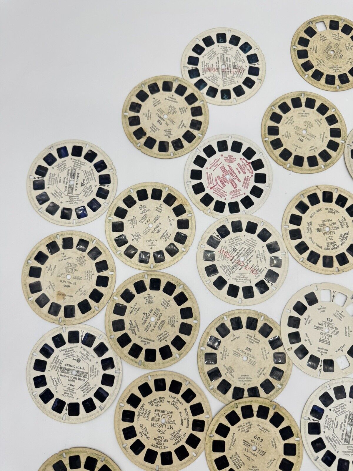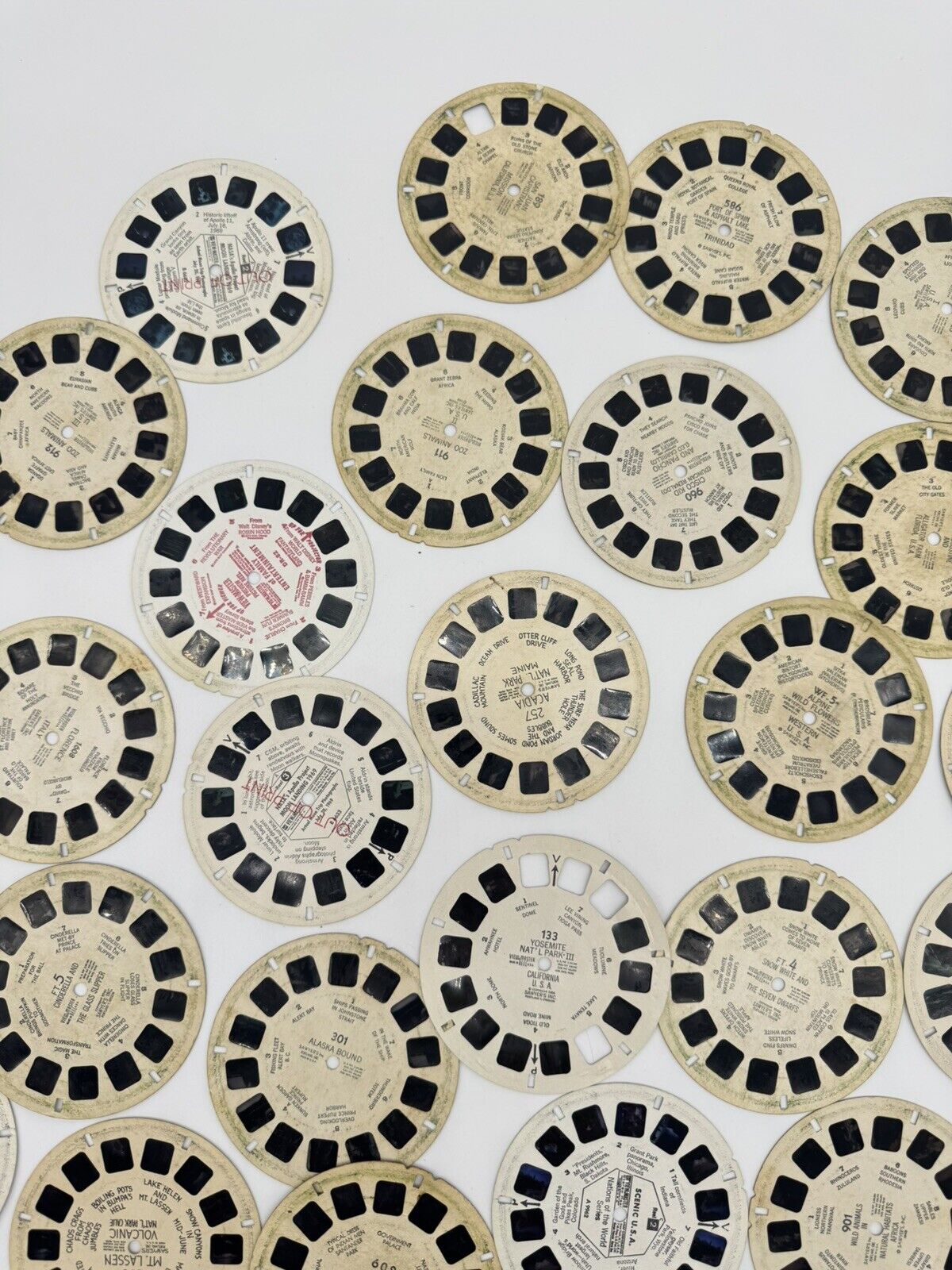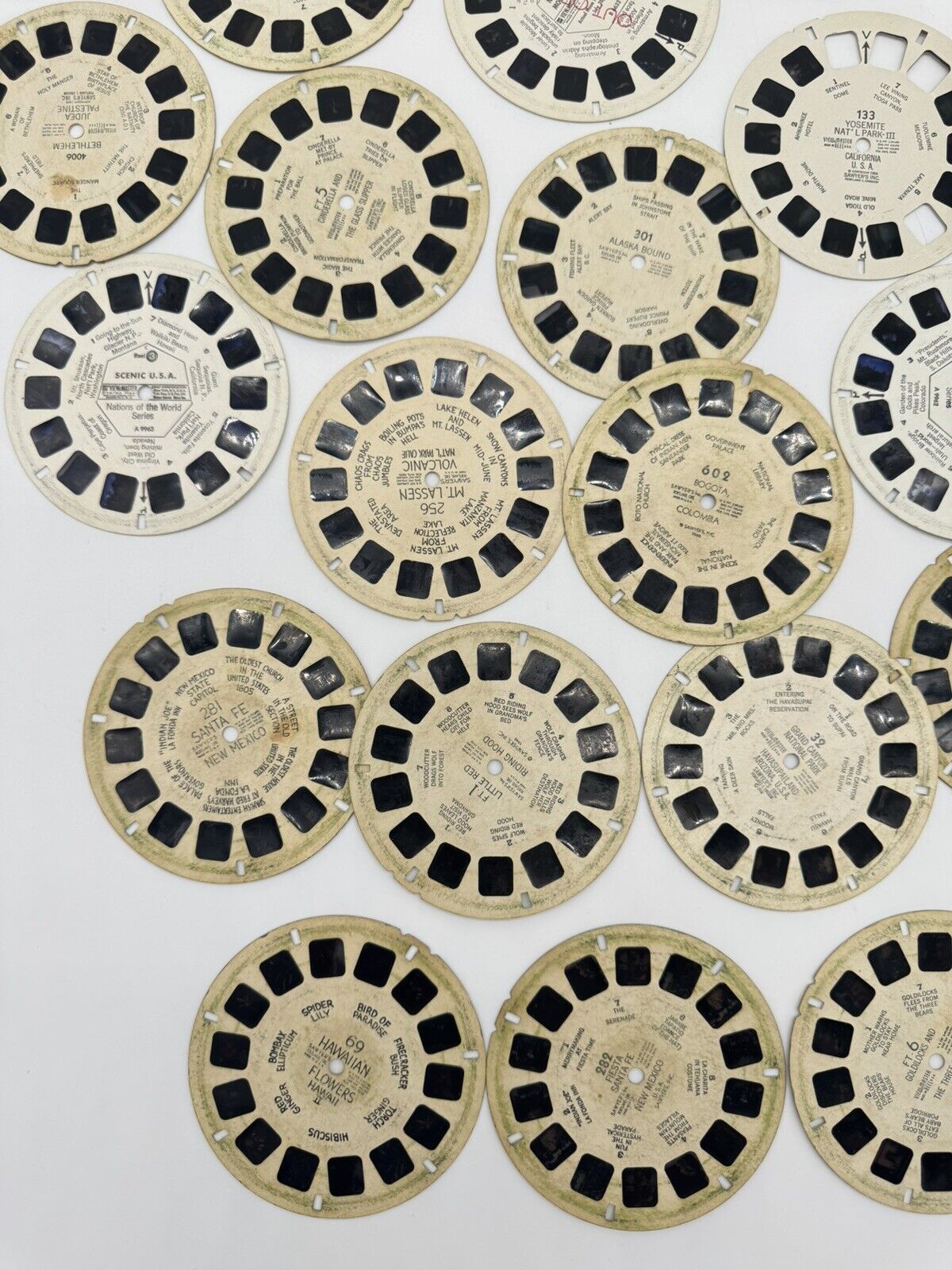 1950s Vintage GAF View-Master Red/White Viewer w/ 36 RARE Reels VTY FNF