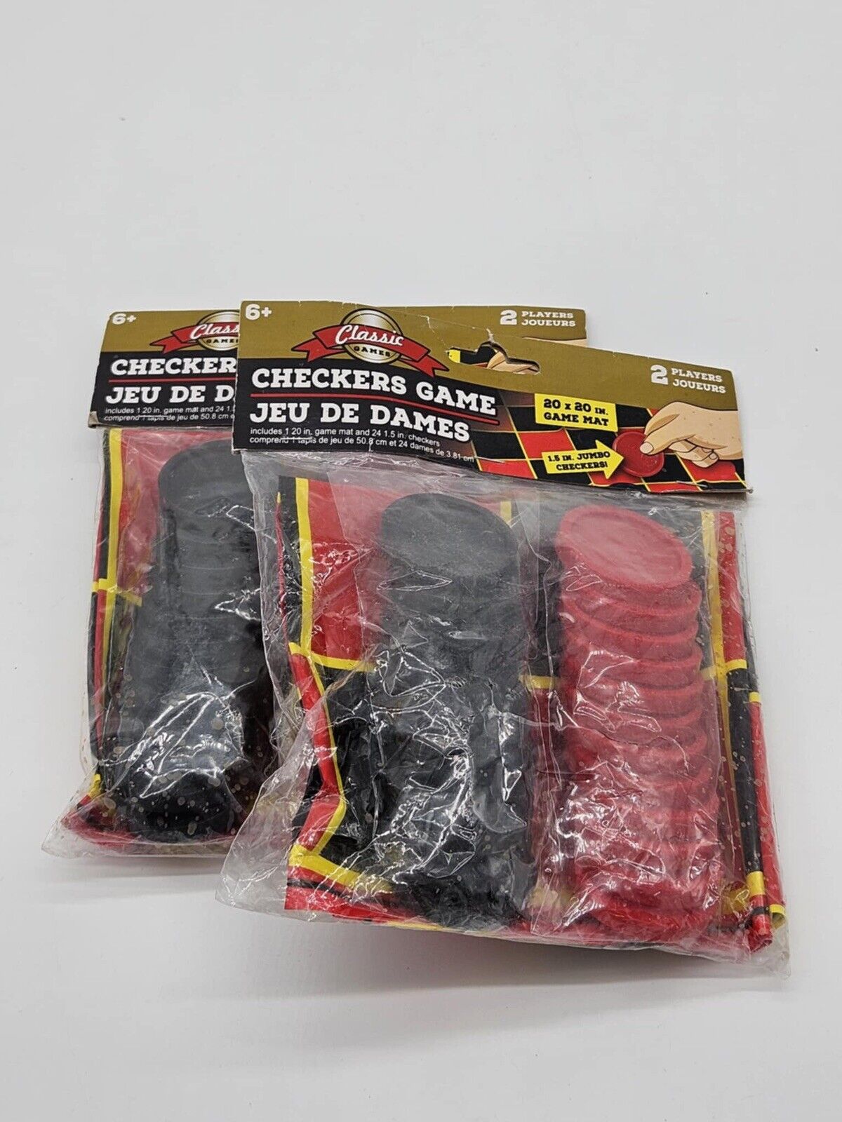2 CLASSIC CHECKERS GAMES INCLUDES 1 BOARD 24 CHECKERS 20" SQUARE GAME MAT NIP. Condition is New. Shipped with USPS Ground Advantage.