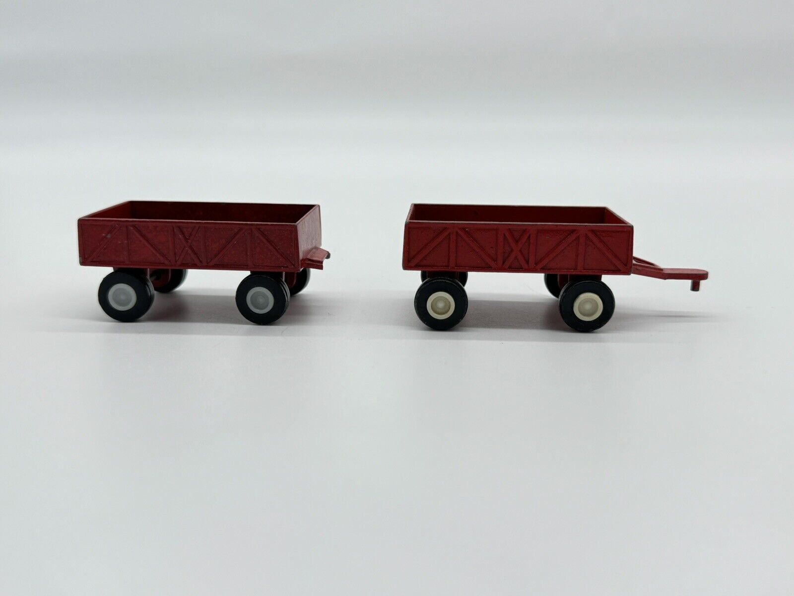 (2) Tootsie Toy Red Farm Trailer Diecast Metal 1/64 ~ One Handle Broken. Condition is Used. Shipped with USPS Ground Advantage.