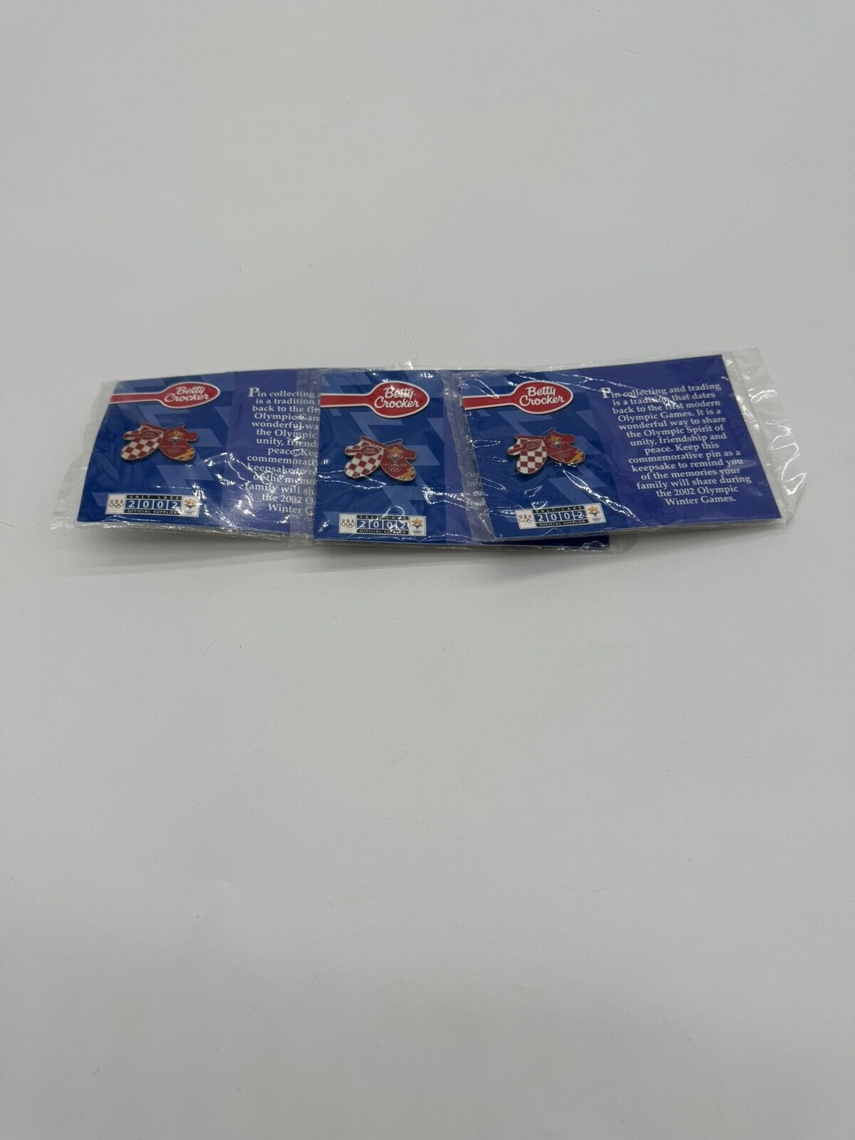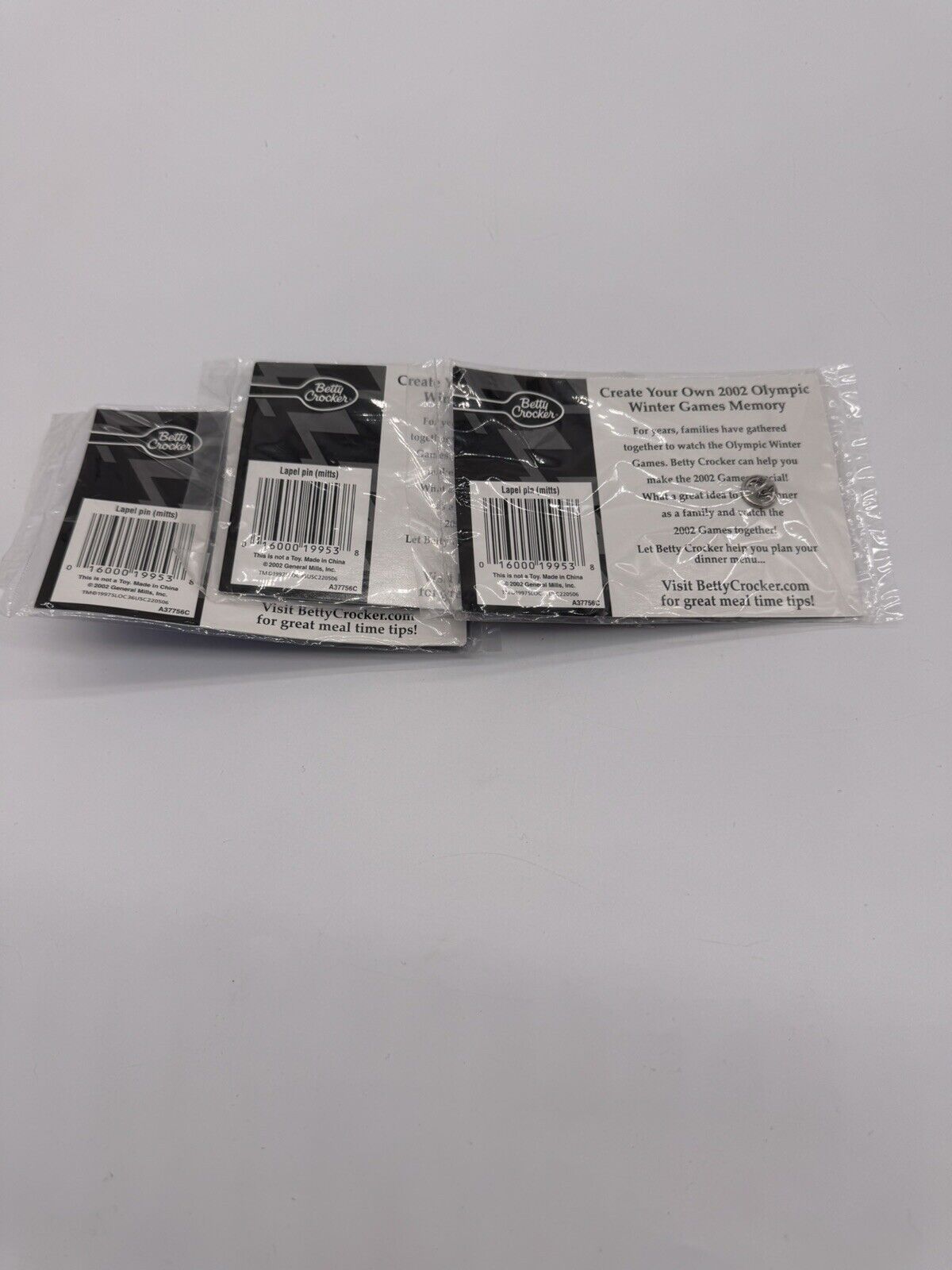3 2002 Olympic Winter Games Betty Crocker Commemorative Salt Lake City Pins. Condition is New. Shipped with USPS Ground Advantage.