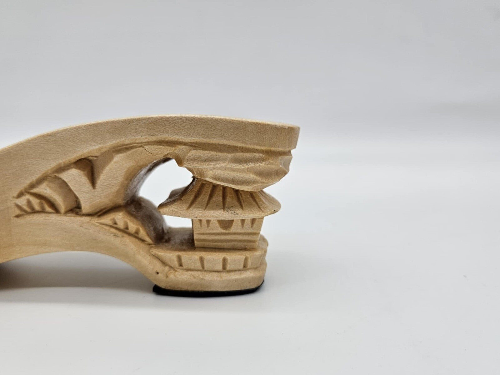 70s Vintage Tiki Carved Wood Crochet Knit Wedges Mules Sandals Deadstock